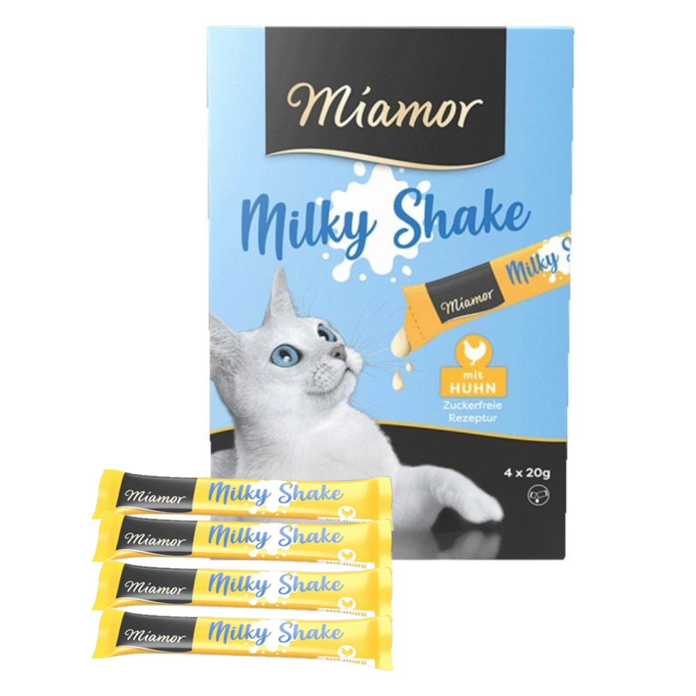 Miamor Milky Shake to pyszna, mleczna nagroda dla dorosłych kotów, wzbogacona delikatnymi kawałkami kurczaka i tauryną. Idealna jako przekąska lub dodatek do posiłku. Zredukowana zawartość laktozy zapewnia lepszą strawność, a brak dodatku cukru, barwników i konserwantów czyni produkt wyjątkowo bezpiecznym dla Twojego pupila.