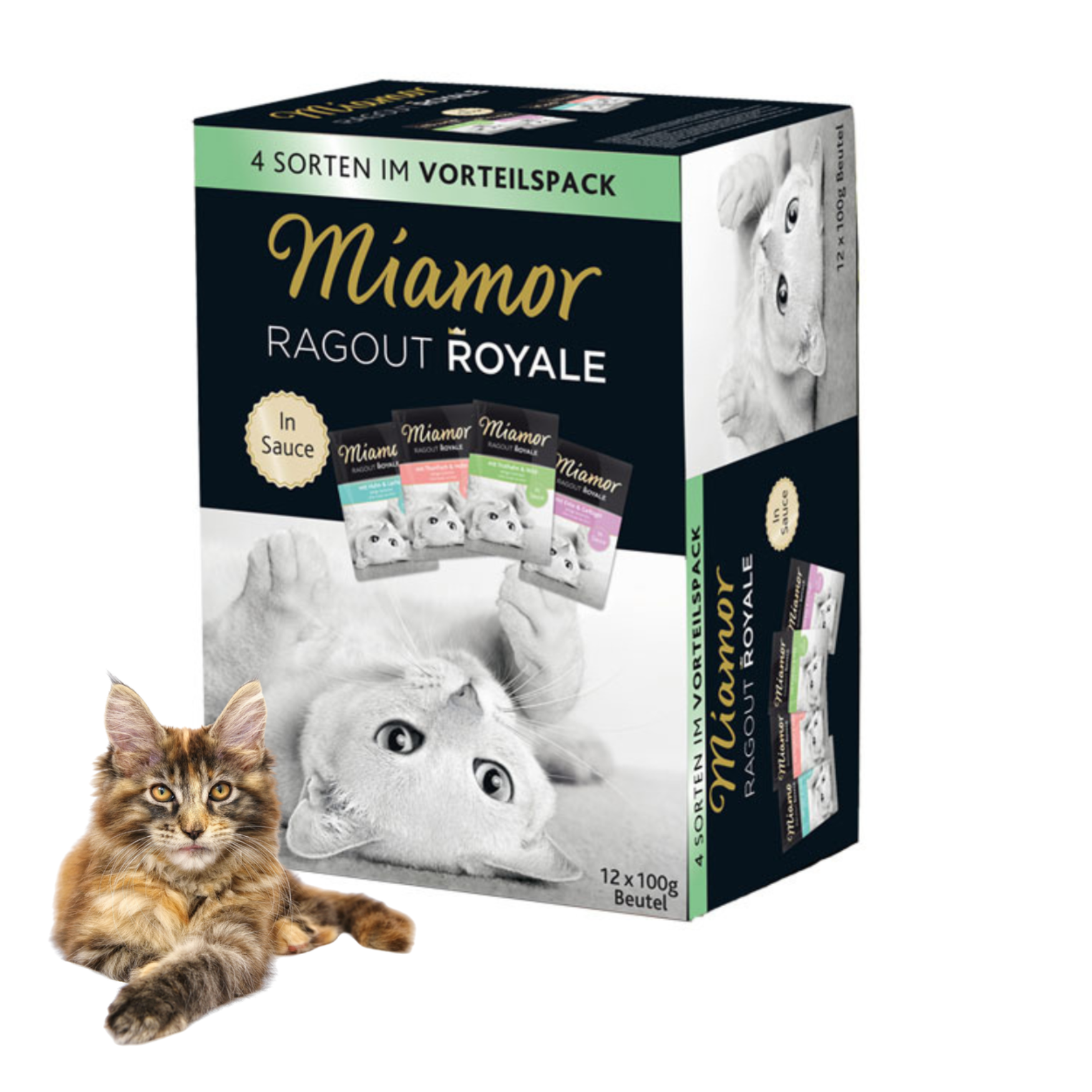 Każde opakowanie to 3 saszetki z każdej wersji smakowej, zapakowane w atrakcyjny kartonik.Formuła karmy jest lekkostrawna, bogata w witaminy, minerały i taurynę, a przy tym bez zbóż, soi, barwników i konserwantów.