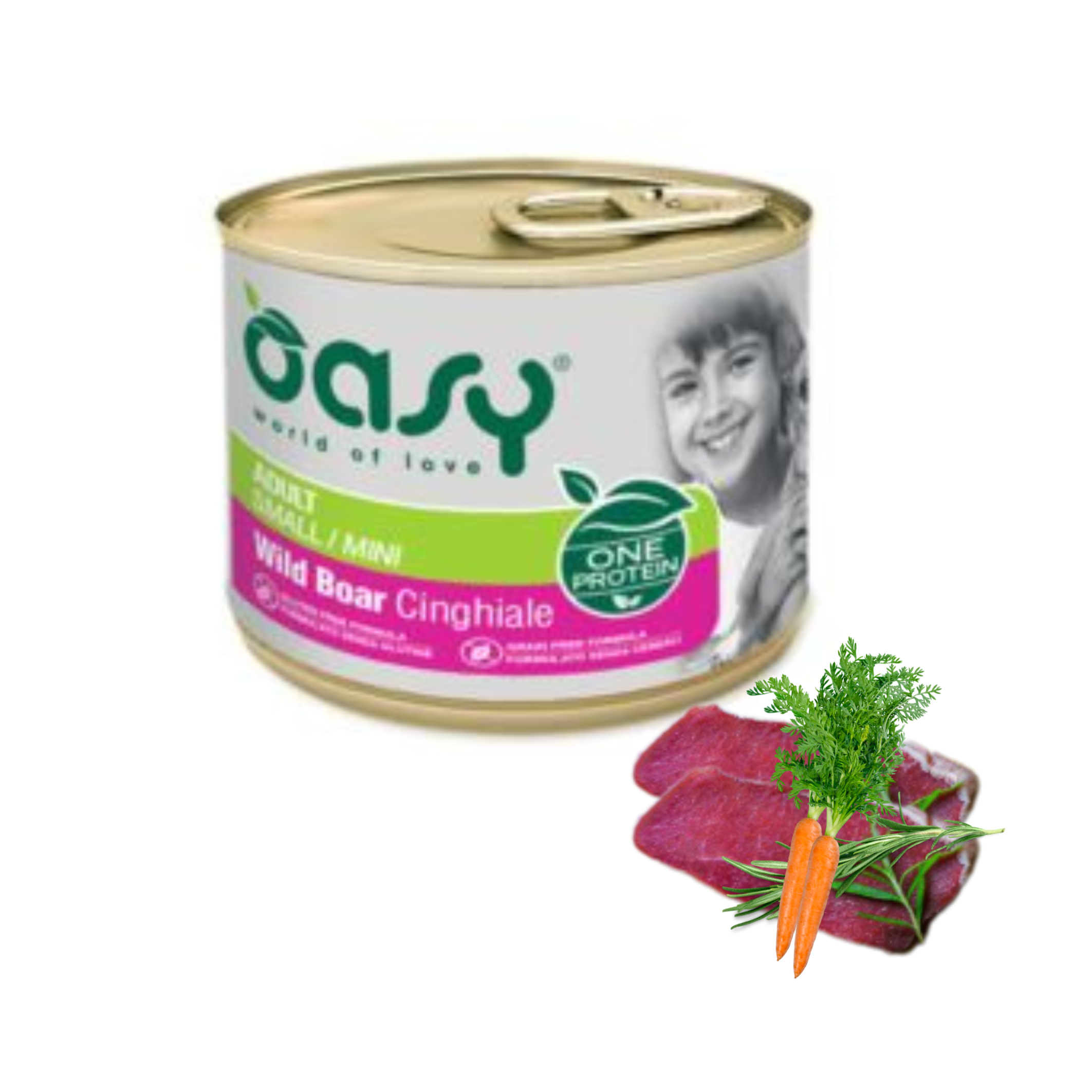 Oasy One Protein Adult Mini to wysokiej jakości mokra karma dla psów dorosłych małych ras. Zawiera aż 94% dziczyzny, co zapewnia naturalne i pełnowartościowe białko zwierzęce. Prosty skład bez zbóż, glutenu, GMO i soi sprawia, że jest idealnym wyborem dla psów z alergiami i problemami trawiennymi. Wzbogacona o marchew oraz niezbędne witaminy wspiera zdrowie i kondycję Twojego pupila.