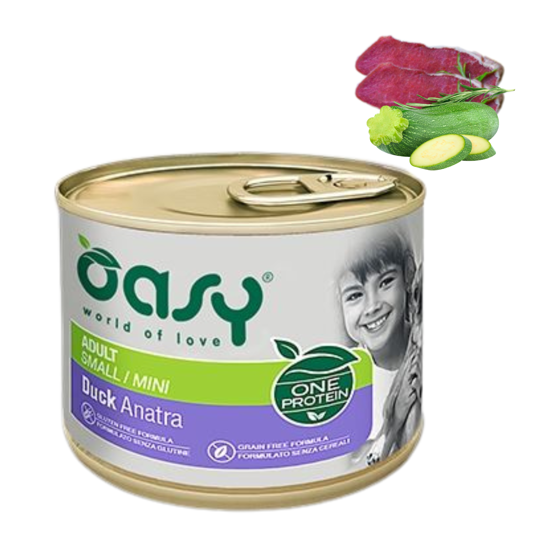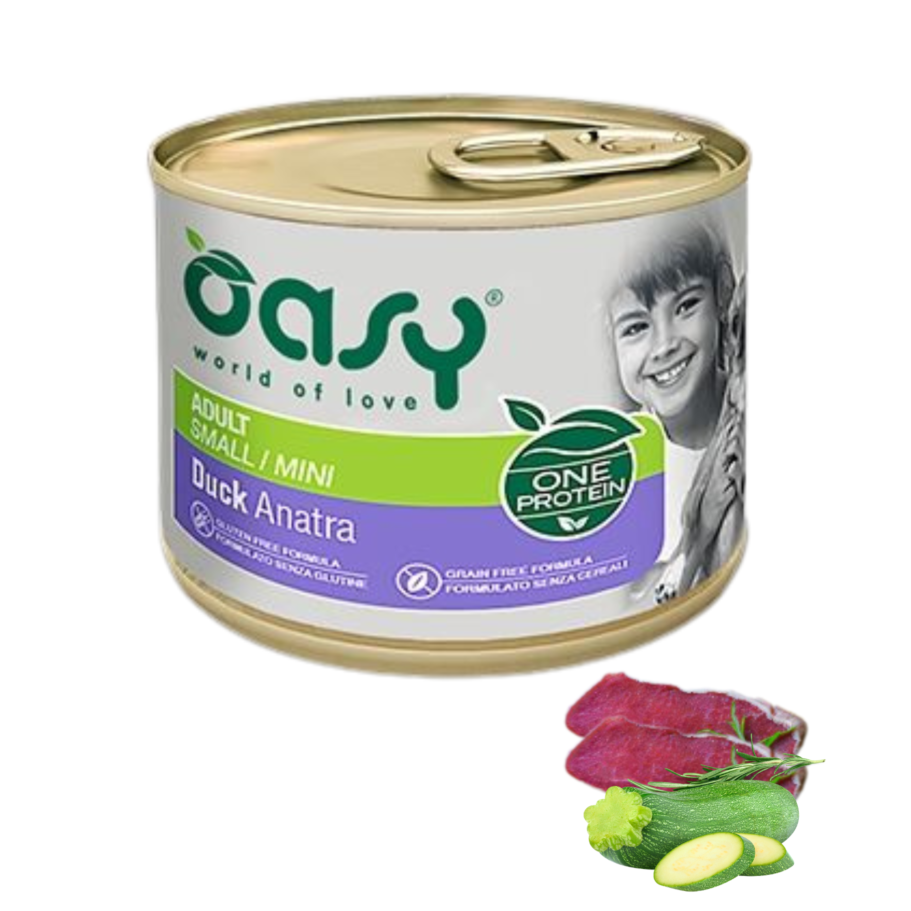 Oasy One Protein Adult Mini to wysokiej jakości mokra karma dla psów dorosłych małych ras. Zawiera aż 94% mięsa kaczki, co zapewnia naturalne i pełnowartościowe białko zwierzęce. Prosty skład bez zbóż, glutenu, GMO i soi sprawia, że jest idealnym wyborem dla psów z alergiami i problemami trawiennymi. Wzbogacona o cukinie oraz niezbędne witaminy wspiera zdrowie i kondycję Twojego pupila.