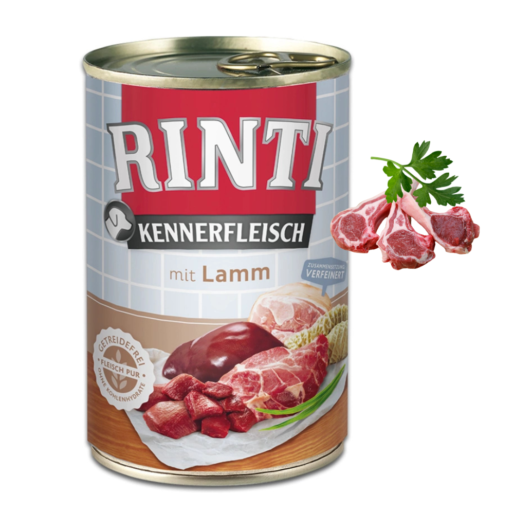RINTI Kennerfleisch z jagnięciną to idealna karma dla psów, które wymagają diety bezzbożowej, a także dla właścicieli, którzy stawiają na zdrowe i smaczne posiłki dla swoich pupili.