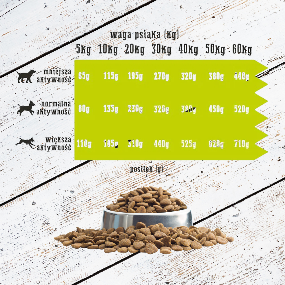 - Rodzaj karmy: Sucha, pełnoporcjowa dla psów dorosłych.