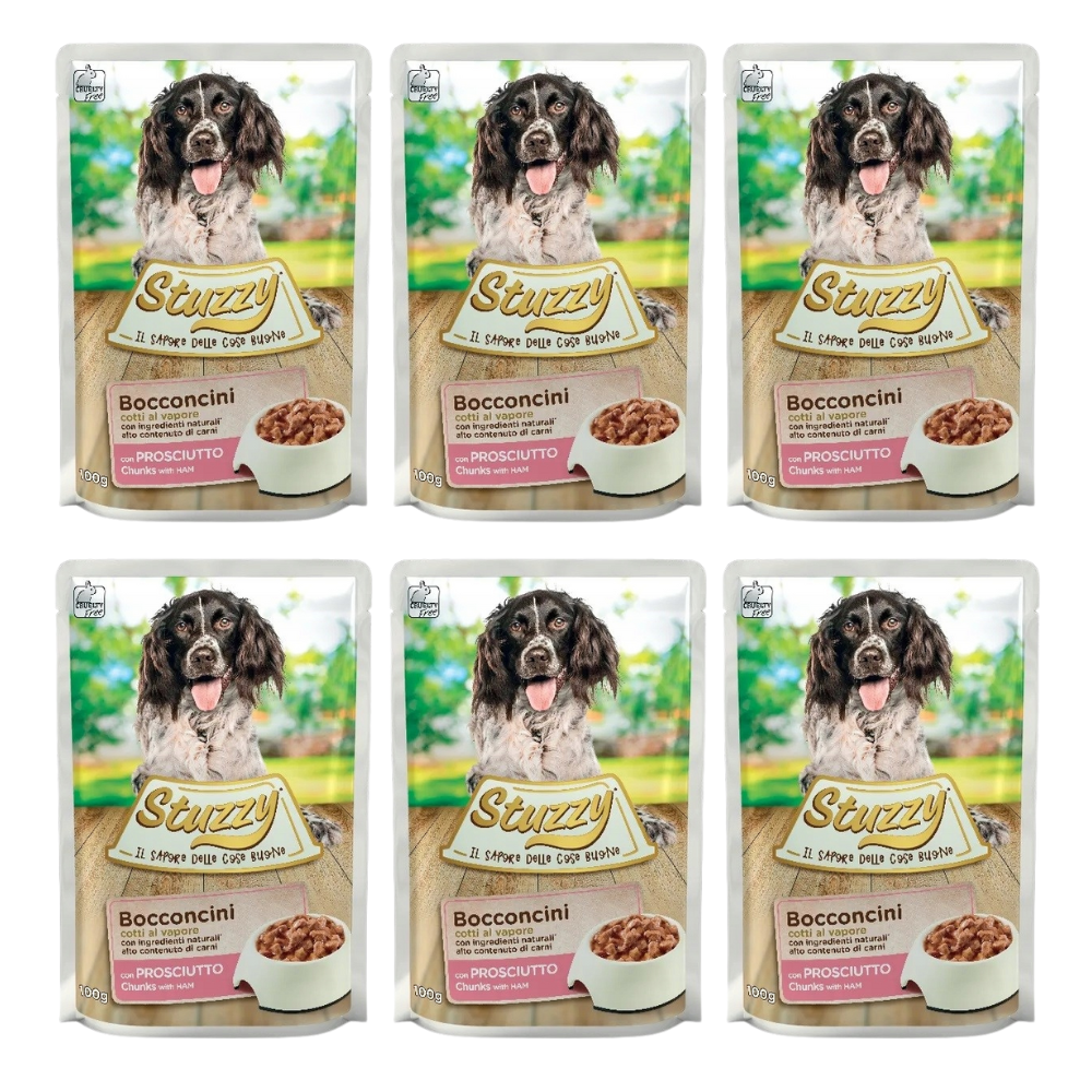 Zestaw 6x Stuzzy Bocconcini SZYNKA mokra karma dla psa saszetka 6x100g