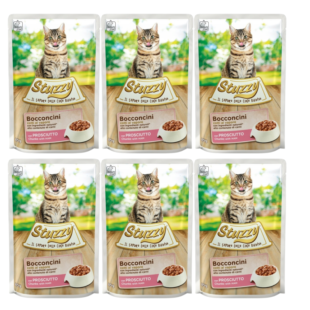Zestaw 6x Stuzzy Mokra karma dla Kota Szynka Saszetka Bocconcini 6x85g